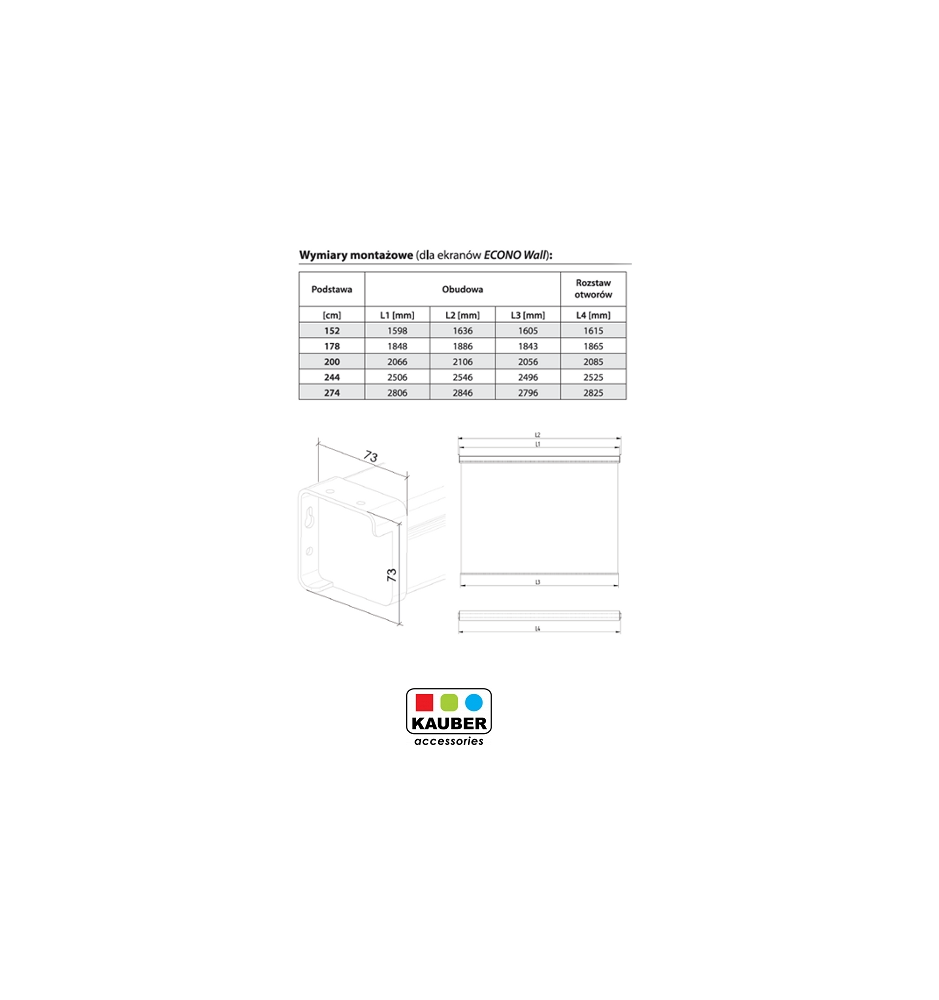 Ekran projekcyjny marki Kauber z serii Econo Wall, to ekran rozwijany ręcznie wyposażony w wysokiej jakości powierzchnię projekcyjną Matt White z czarnym obramowaniem. Produkt świetnie nadaje się do użytku w zaciszu domowego kina, jak i w biurze do prezentacji czy w placówkach szkolnych oraz wszędzie tam gdzie wymagana jest wysoka jakość powierzchni projekcyjnej za niewygórowaną cenę.