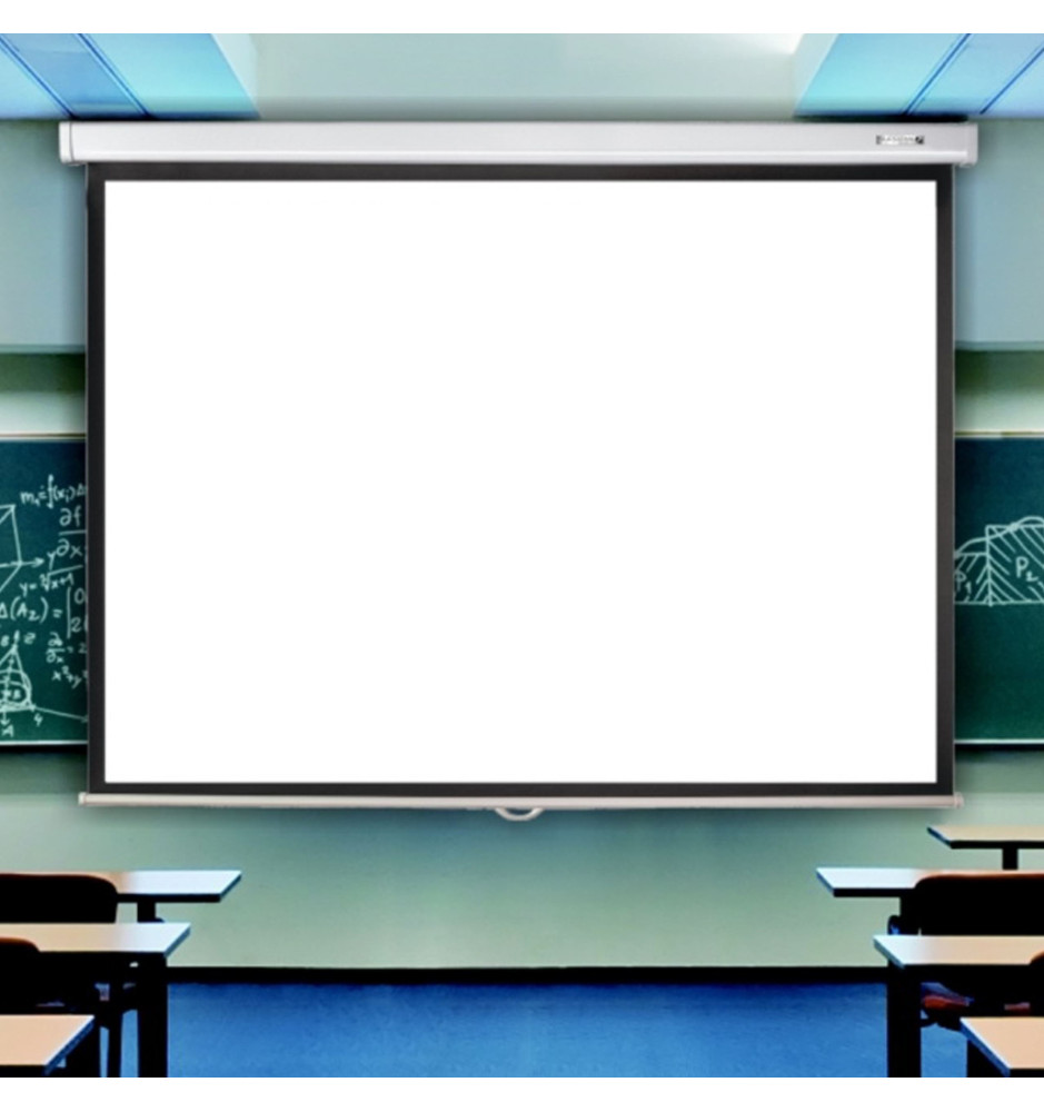 Ręcznie rozwijany ekran projekcyjny z linii ekonomicznej o powierzchni projekcyjnej Matt White - dedykowany do zastosowań w edukacji, salach konferencyjno-szkoleniowych lub kinie domowym.