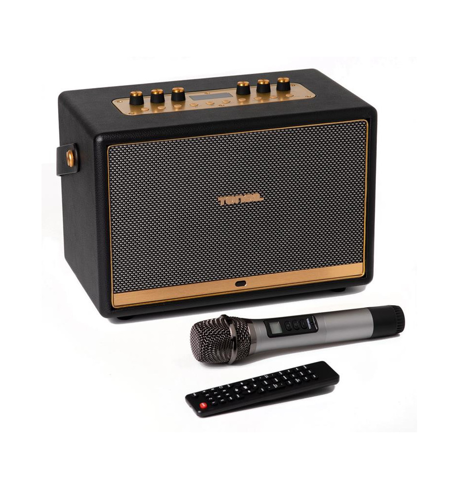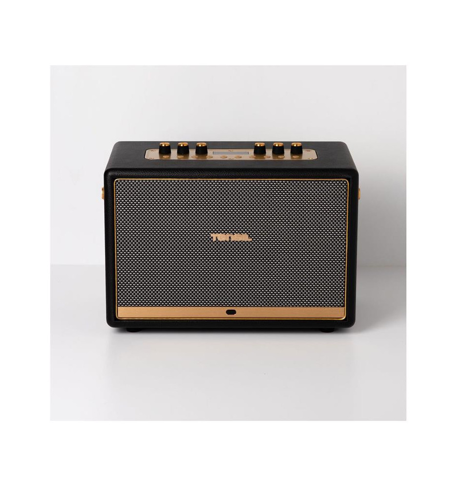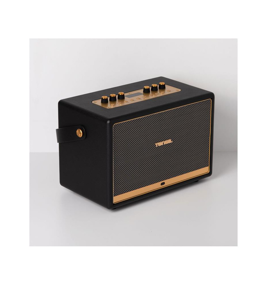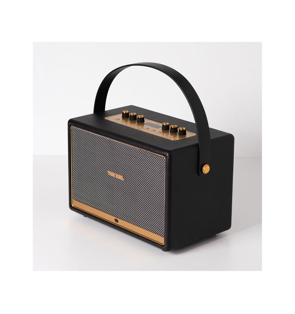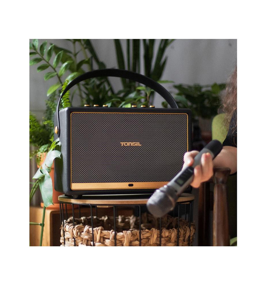 Uniwersalny głośnik, stylizowany na wygląd retro z gustownym wykończeniem z metalu i skóry. W połączeniu z dołączonym mikrofonem bezprzewodowym pozwala na odtwarzanie i tworzenie muzyki. Możliwość łączenia za pomocą Bluetooth lub wykorzystania wejścia AUX pozwala odtwarzać sygnały ze źródeł zarówno cyfrowych, jak i analogowych.