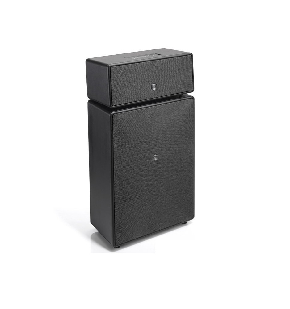 Audio Pro Drumfire ręcznie obszyto sztuczną skórą z aluminiowymi detalami, dzięki czemu kolumna idealnie wpasuje się w każde nowoczesne wnętrze.