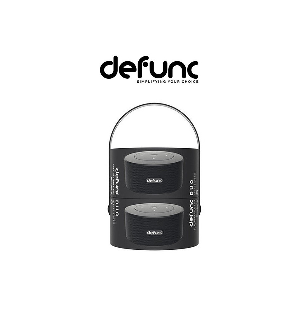 Zestaw głośników DeFunc Duo to pierwszy w Polsce mobilny system stereo umożliwiający przekształcenie mieszkania w sale seansów filmowych bądź parkiet imprezowy. Wystarczy połączyć oba głośniki, aby uzyskać wysokiej jakości, przestrzenny dźwięk stereo. Technologia Bluetooth pozwala na odtwarzanie muzyki w różnych pomieszczeniach w zasięgu 10 metrów od źródła dźwięku.
