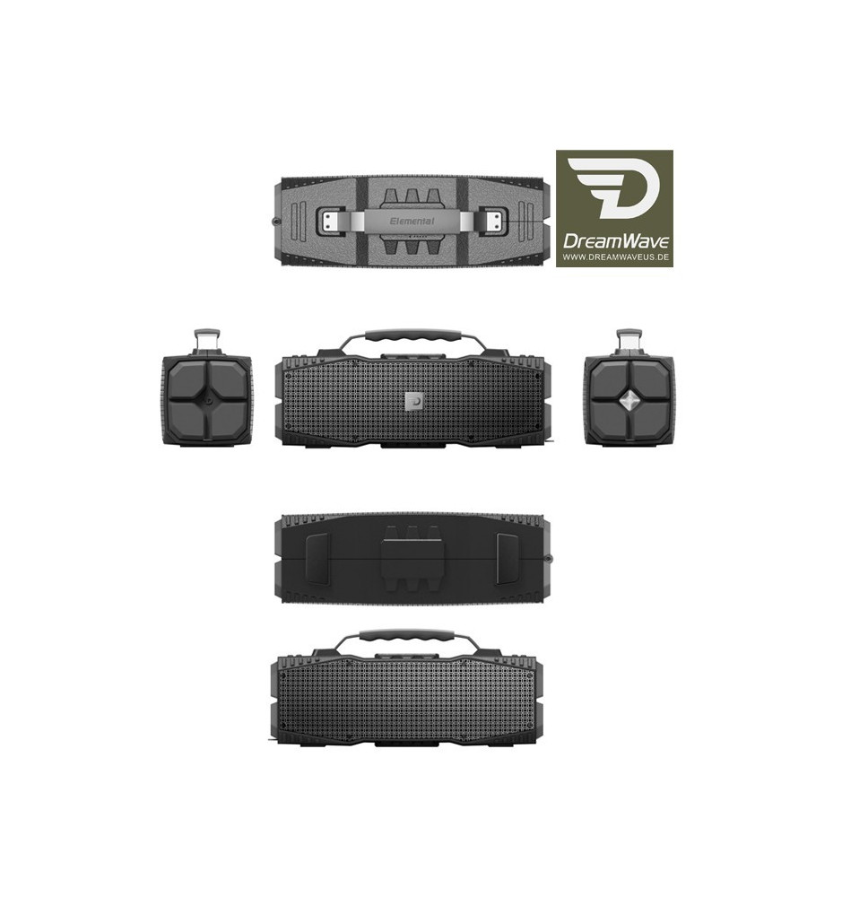 DreamWave Elemenatal to wysokowydajny system głośnikowy cechujący się mocą na poziomie 30 W, precyzyjnym wykonaniem oraz doskonałym dostrojeniem. Głośnik może pochwalić się certyfiktarem IPX5 gwarantującym ochronę urządzenia przed wodą oraz pyłem.
