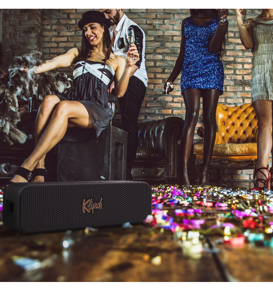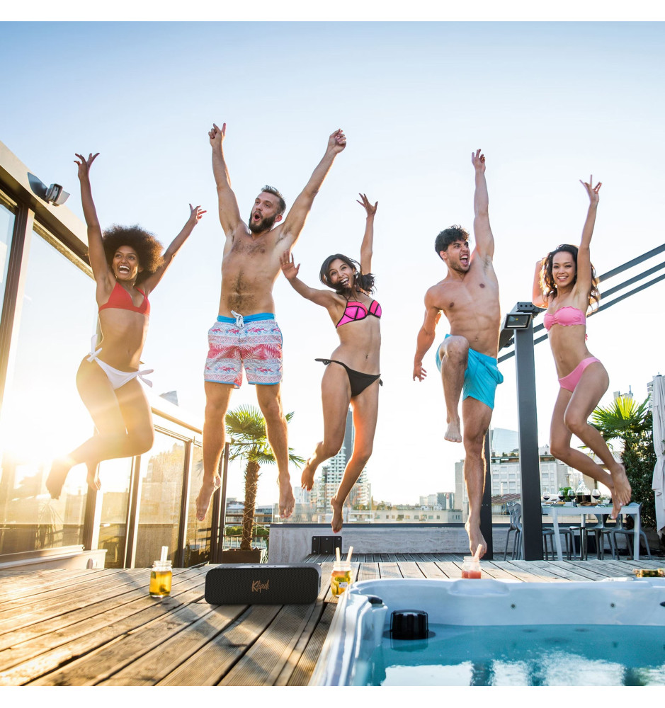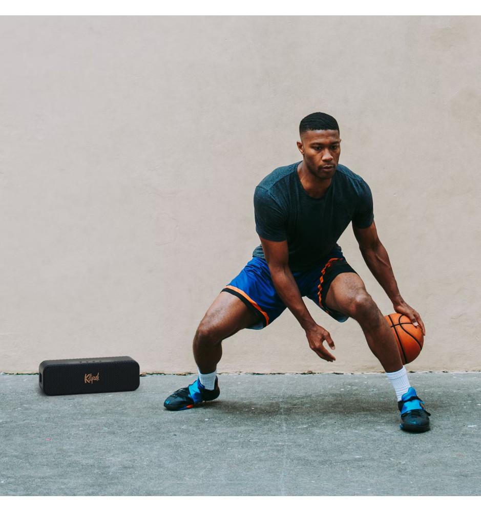 Największy i najmocniejszy przenośny głośnik bezprzewodowy Bluetooth 5.3 z serii Music City od Klipsch o mocy wyjściowej 2x 15W z wbudowanym mikrofonem oraz wydajnym akumulatorem litowo-jonowym, zapewniającym do 20 godzin pracy.