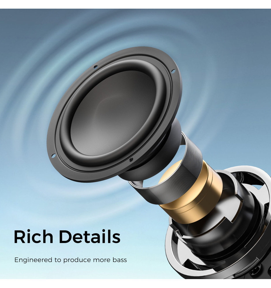 Niewielki przenośny głośnik bezprzewodowy, korzystający z energooszczędnej i stabilnej technologii Bluetooth 5.0, oferujący dźwięk przestrzenny 360° surround z mocnymi basami.