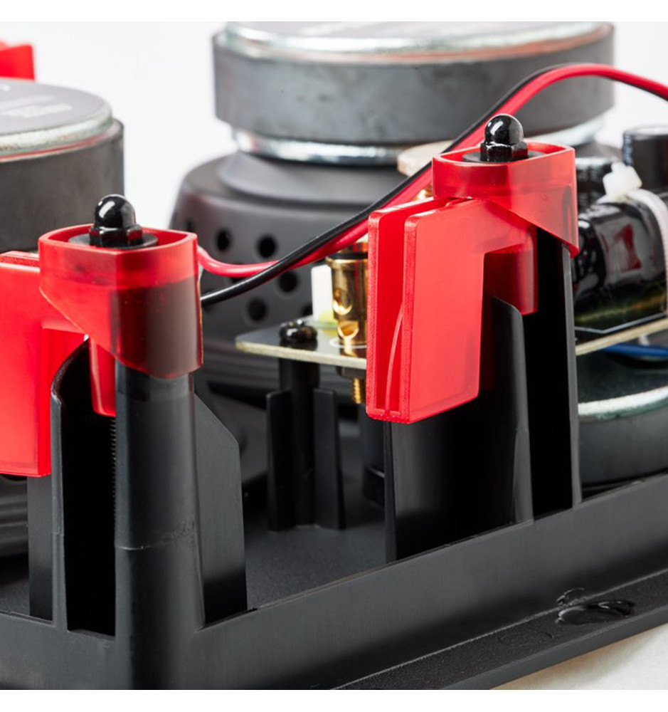 Dzięki tytanowej kopułce wysokotonowej i głośnikom średnio-niskotonowym z membraną z polipropylenu wypełnionego minerałami zapewnia czyste, zrównoważone brzmienie przy niemal niewidocznej instalacji.