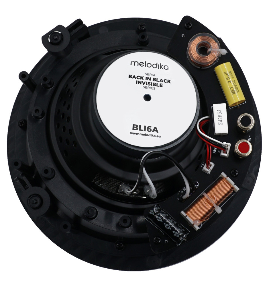 Back in Black Invisible to seria wysokiej klasy głośników instalacyjnych od Melodika, które zostały zbudowane w oparciu o komponenty stosowane w wielokrotnie nagradzanych głośnikach Back in Black, takie jak precyzyjnie nawijane miedziane cewki i mylarowy kondensator. Głośniki BLI6A, pomimo swojej przystępnej ceny, wykorzystują technologie i podzespoły zaczerpnięte z modelu BL40 MK3.