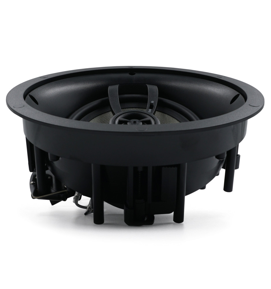 Pierścień montażowy z łapkami blokującymi jest niezależny od stalowego kosza głośnika, skutecznie redukując rezonanse oraz niepożądane wibracje przenoszone pomiędzy głośnikiem a ścianą. Wyściełane, 6-punktowe magnetyczne mocowanie maskownicy dodatkowo zwiększa jej stabilność oraz eliminuje powstawanie pogłosów przy większych poziomach głośności.