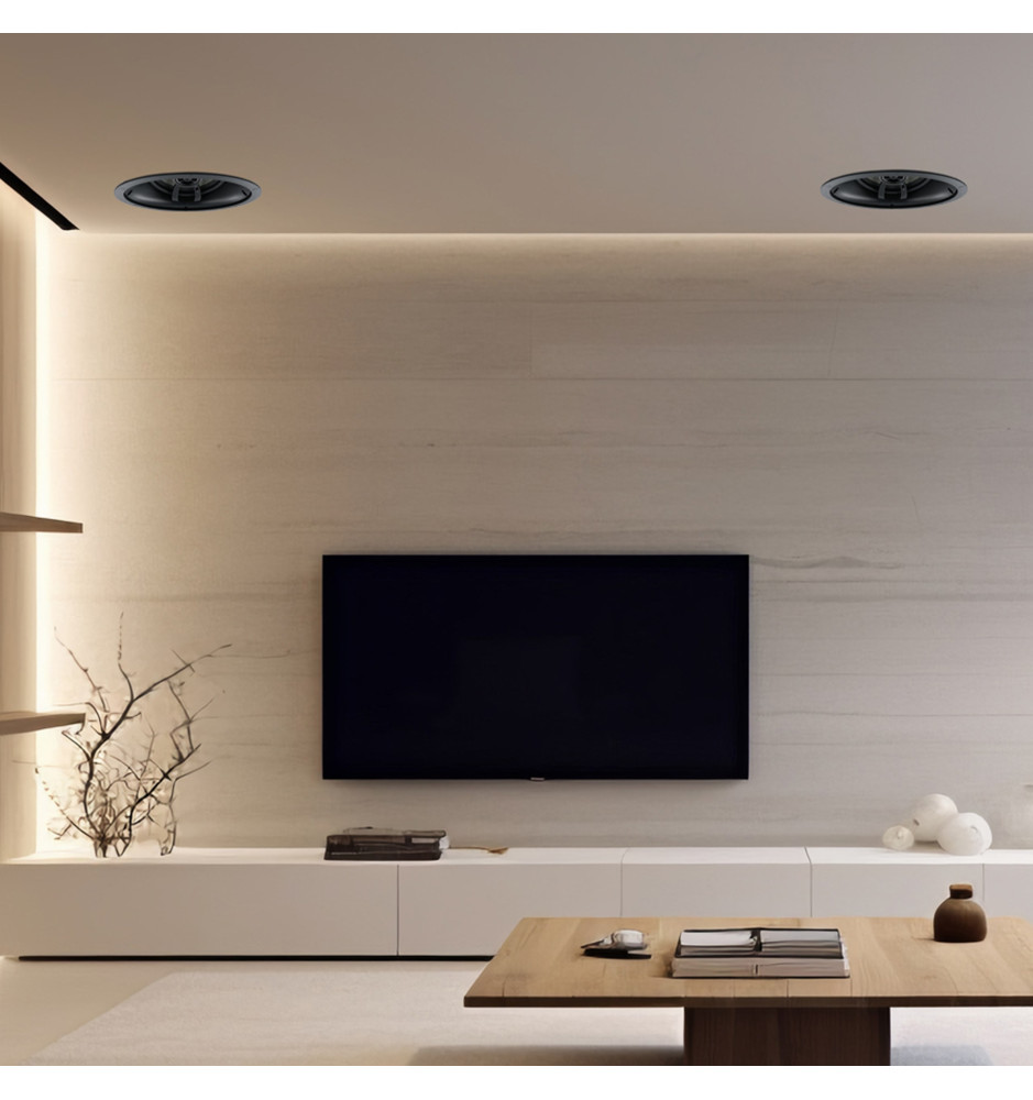 Kierunkowy 2-drożny głośnik instalacyjny z serii Back in Black Invisible, dedykowany do montażu ściennego lub sufitowego. Jego przetworniki skierowane pod kątem 15 stopni pozwalają na precyzyjne ustawienie kierunku promieniowania dźwięku.