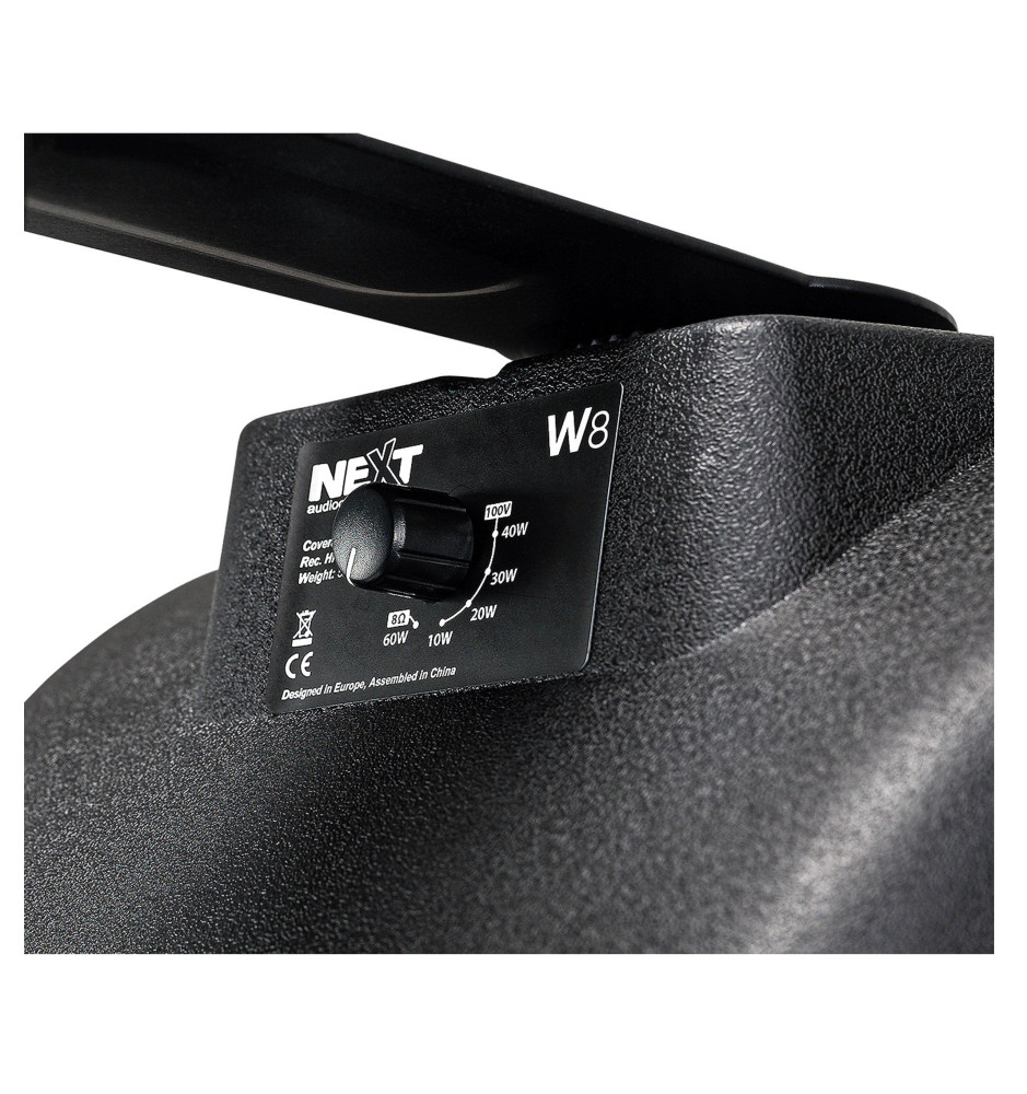 Para głośników z wbudowanym transformatorem 100V oraz odczepem mocy 8 Ohm. NEXT Audiocom W8 ze względu na swoją konstrukcję doskonale sprawdzą się w różnego typu środowiskach, zarówno wewnątrz, jak i na zewnątrz budynków. Głośniki te z powodzeniem mogą być wykorzystywane w takich miejscach, jak sklepy, bary, restauracje czy siłownie. W zestawie wraz z nimi znajdują się regulowane wsporniki w kształcie litery U, które umożliwiają instalację np. na ścianie bądź suficie. Szczelna i wytrzymała obudowa charakteryzuje się klasą szczelności na poziomie IP55, co w praktyce oznacza, że skutecznie chroni wrażliwe komponenty zewnętrzne przed wodą i różnego rodzaju pyłem oraz zanieczyszczeniami.