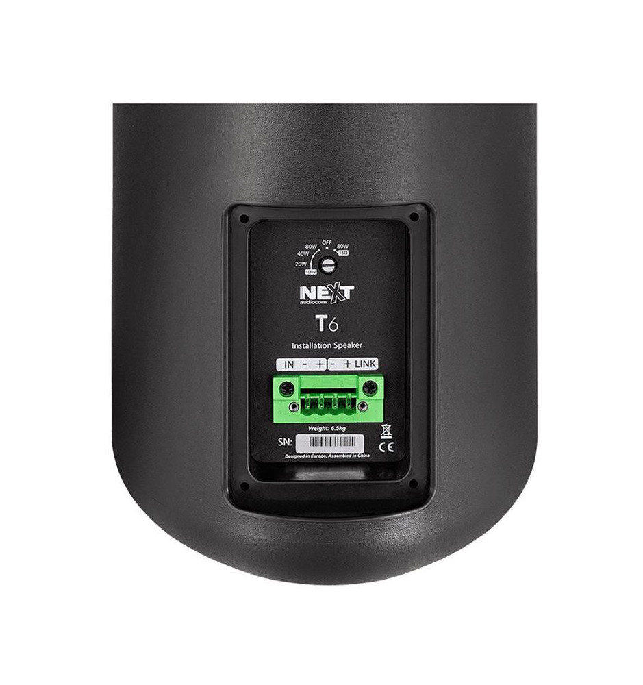Wytrzymała obudowa głośników T6 zrobiona została z tworzywa sztucznego. Dzięki bardzo wysokiej szczelności spełnia rygorystyczną, certyfikowaną normę IP65, co pozwala na ich montaż w praktycznie każdym środowisku. Oznacza to, że głośniki będą działać bez zarzutów nawet w warunkach o dużej wilgotności i zapyleniu.