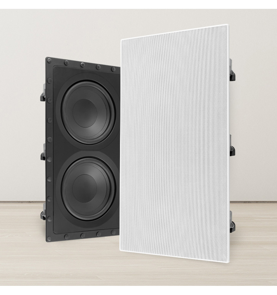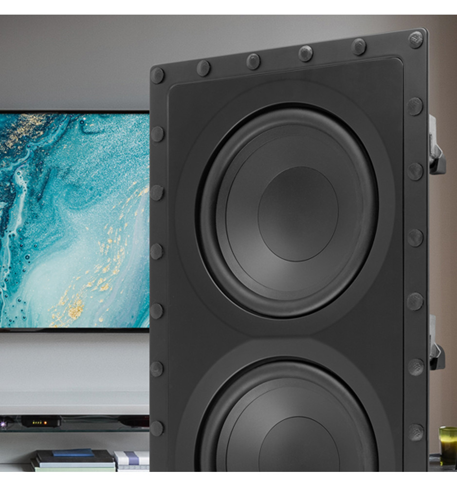Potężny subwoofer pasywny, przystosowany do dyskretnej instalacji w ścianie i wyposażony w dwa 8-calowe przetworniki niskotonowe wzmocnione włóknem węglowym dla zapewnienia doskonałych basów przy zachowaniu niewielkiej powierzchni.