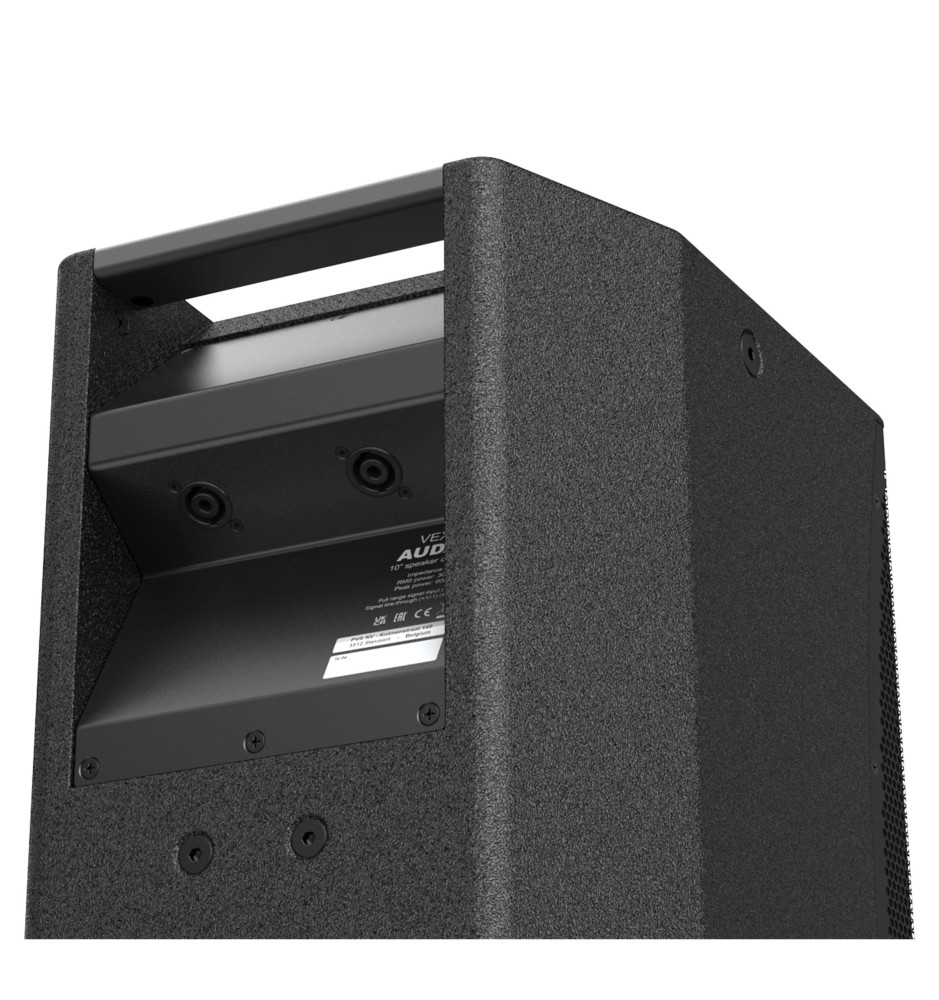 Dwa ukośne złącza głośnikowe Speakon zapewniają niezawodne i łatwo dostępne połączenie. Umieszczenie przewodów głośnikowych pod kątem pozwala uniknąć niepożądanych przerw w sygnale. Dodatkowo zastosowanie opcjonalnego transformatora liniowego 70/100 V pozwala używać tego niezwykle wydajnego głośnika również w systemach 70/100 V.