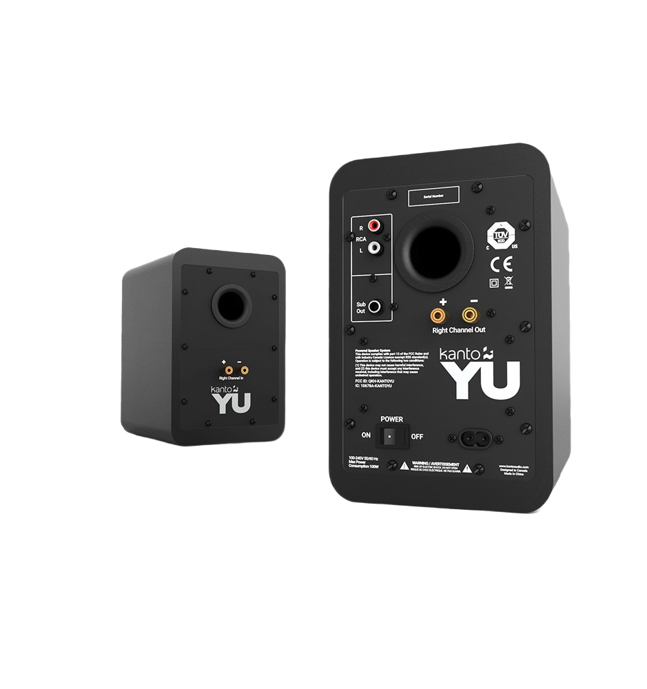 KANTO YU Active Black to stylowe, kompaktowe kolumny aktywne oferujące mocne, naturalne brzmienie dzięki 4" przetwornikom Kevlar® i 1" jedwabnym kopułkom, bezprzewodowemu streamingowi aptX i możliwości rozbudowy o subwoofer.