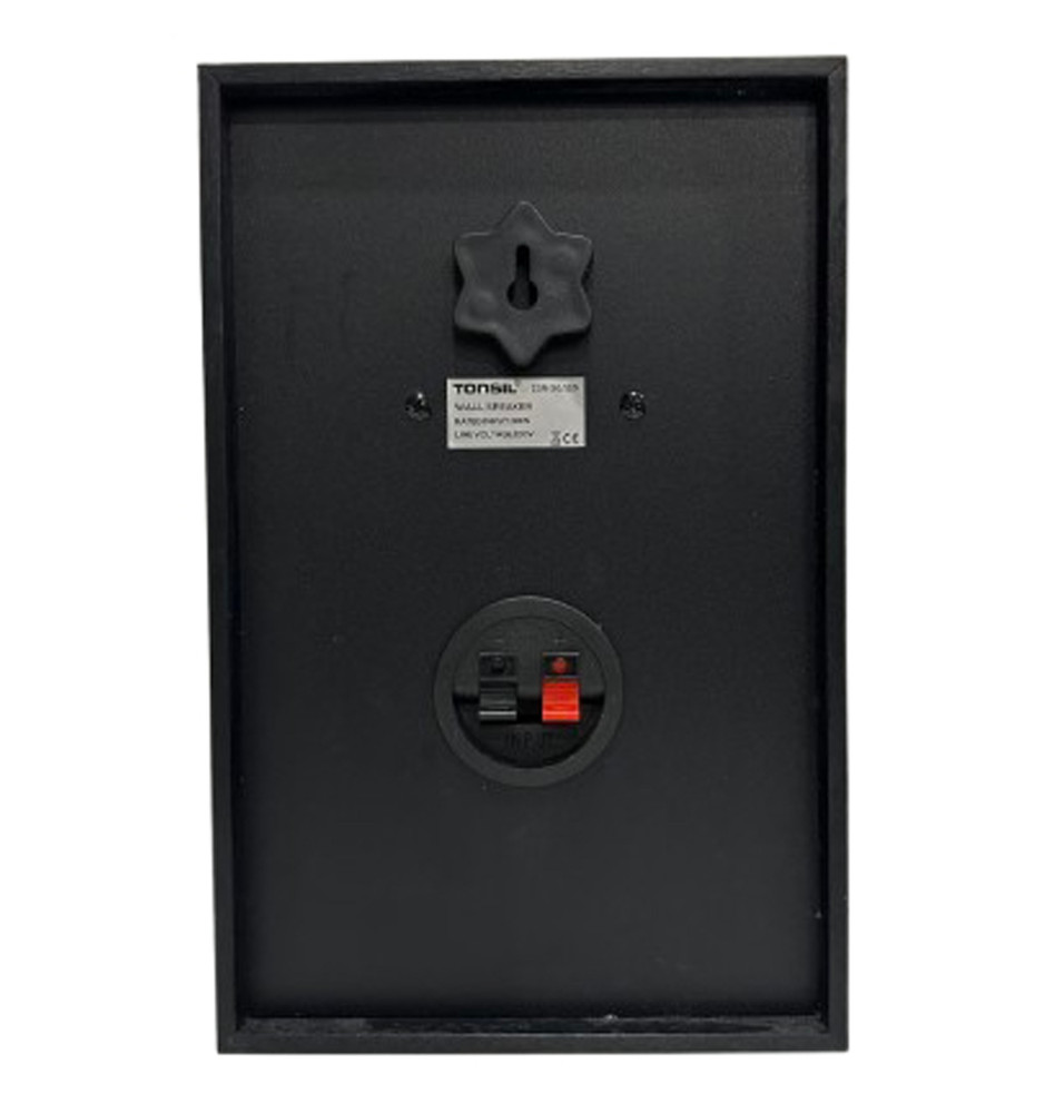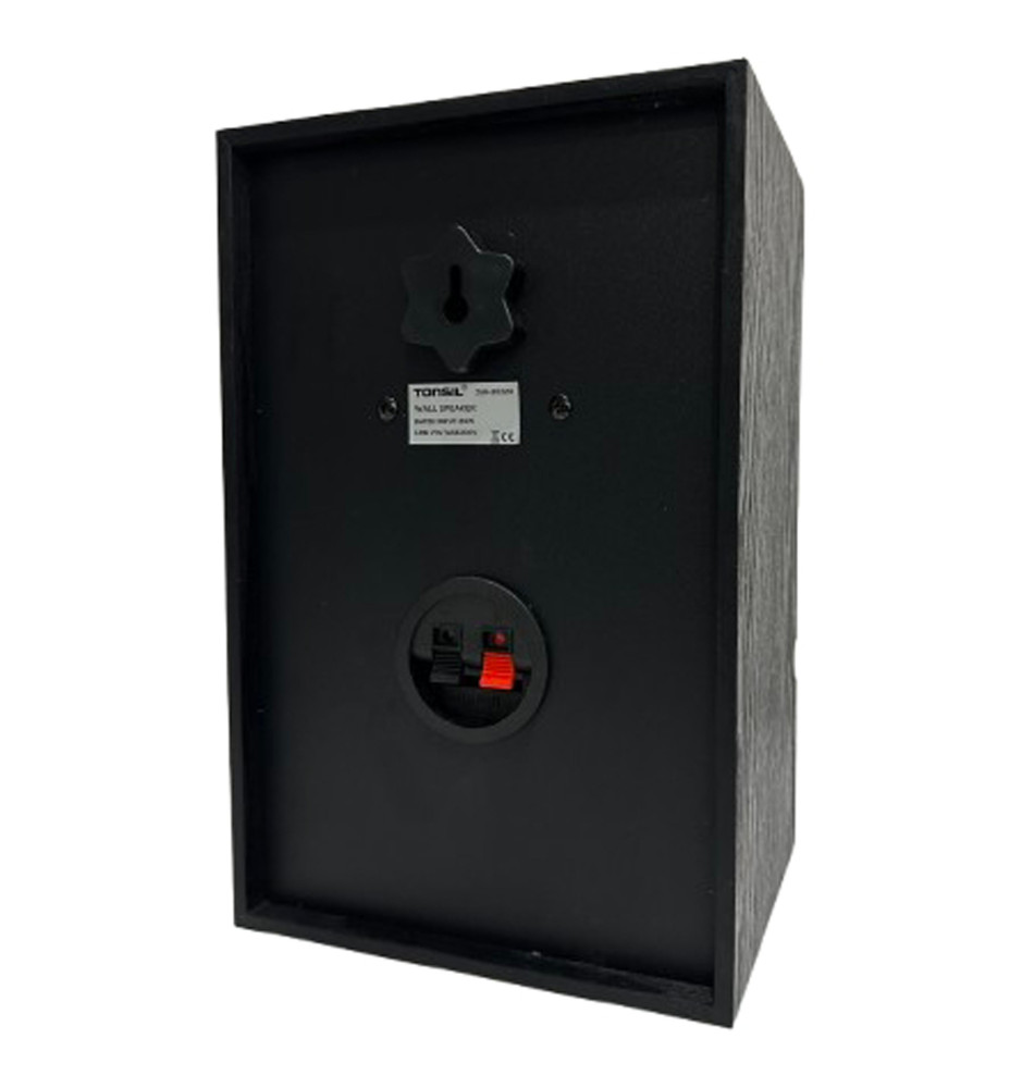 Elegancka obudowa z drewna w klasycznej czarnej kolorystyce nie tylko atrakcyjnie się prezentuje, ale również wspiera akustykę urządzenia. Kompaktowa forma i konstrukcja naścienna pozwalają na szybki i wygodny montaż w różnorodnych przestrzeniach, od sal konferencyjnych, przez korytarze, po biura i pomieszczenia edukacyjne.