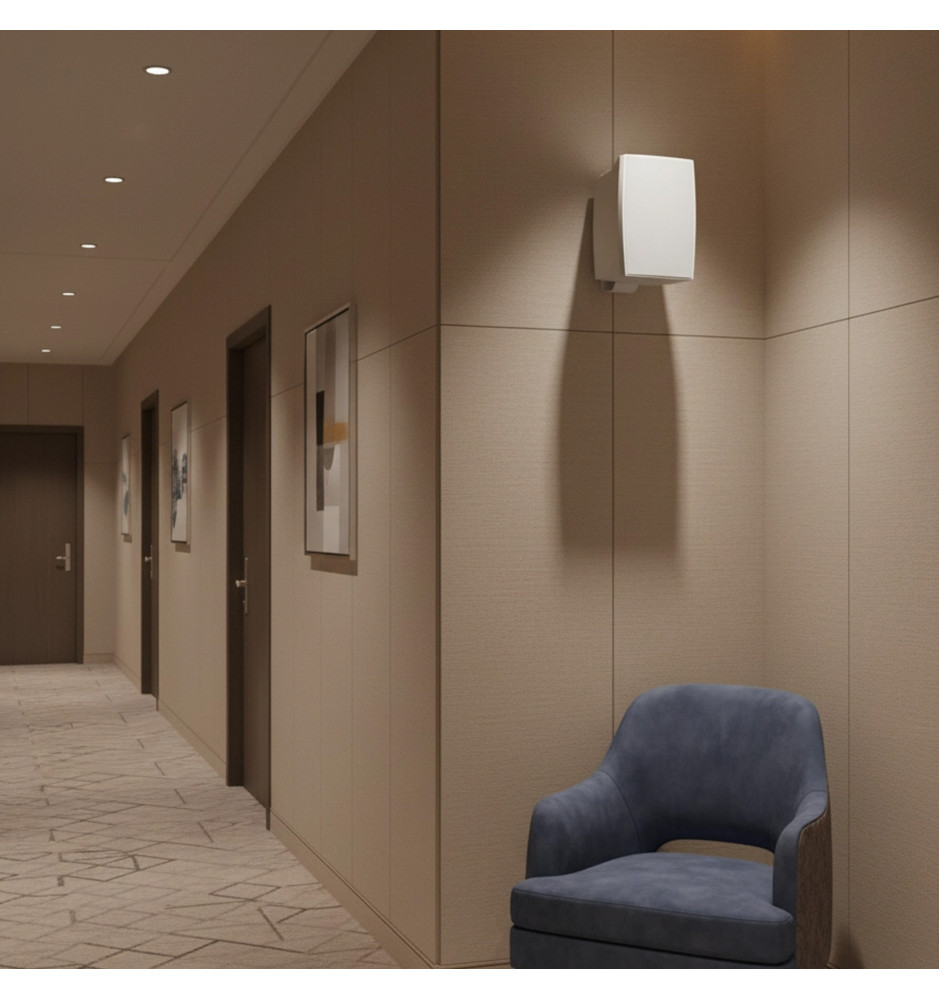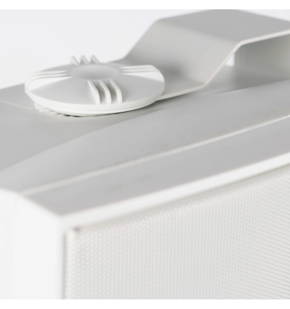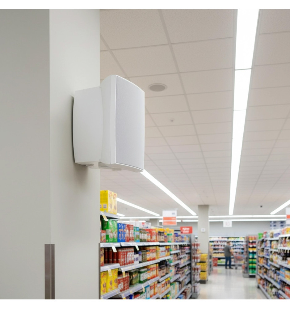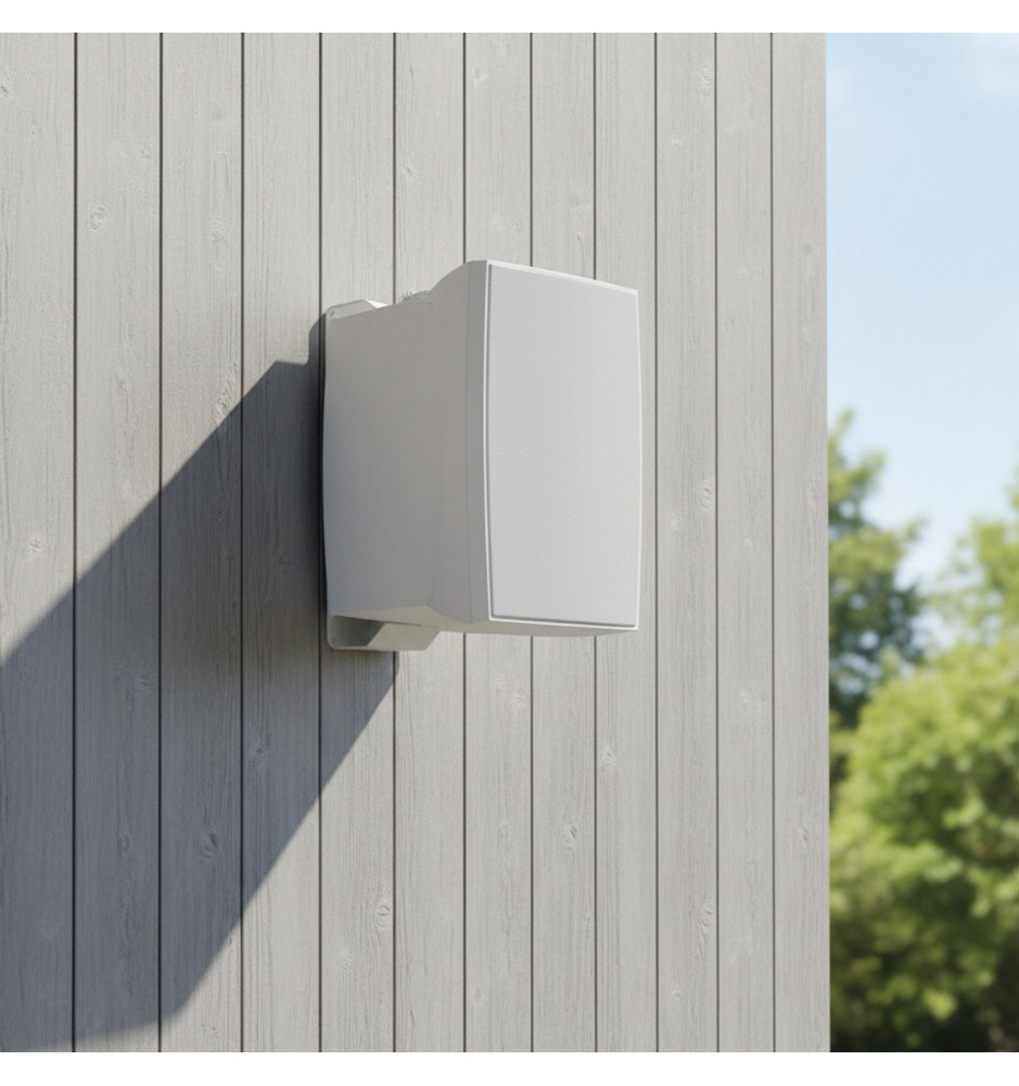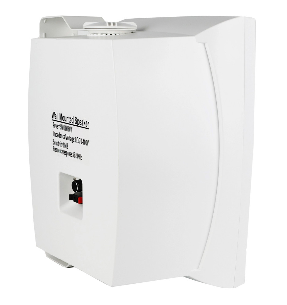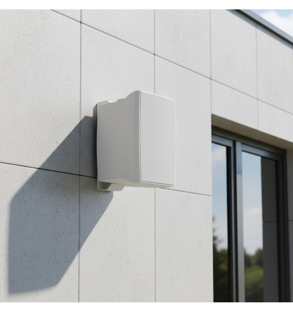 Obudowa wykonana z wytrzymałego ABS zapewnia odporność na czynniki mechaniczne, a sam głośnik można zamontować na ścianie z użyciem dołączonego uchwytu i śrub zaciskowych. Estetyczny biały kolor harmonijnie wtapia się w przestrzeń i nie zakłóca aranżacji wnętrz.