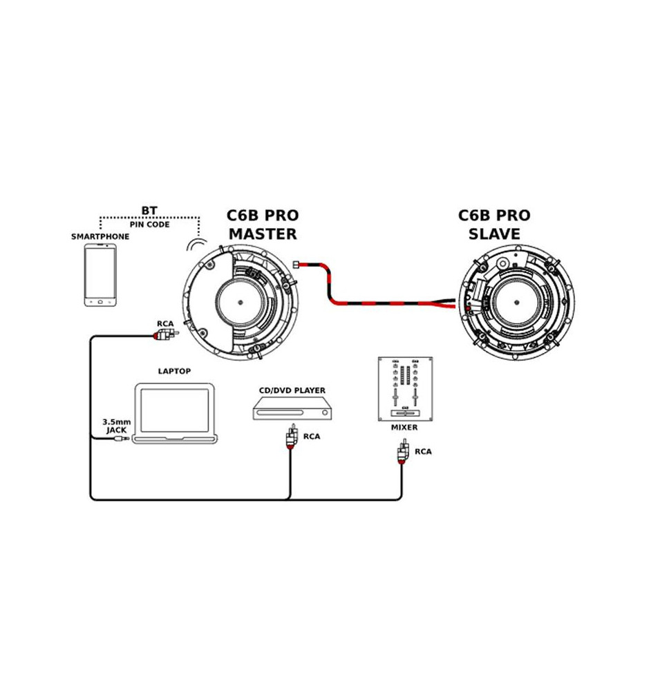 Para głośników instalacyjnych (aktywny i pasywny), którymi można sterować zdalnie dzięki dołączonemu pilotowi lub przy użyciu dedykowanej aplikacji ma telefon. Aktywny głośnik ma wbudowany amblifier i zasila ten pasywny, dzięki czemu nie jest potrzebne rozszerzanie instalacji o żaden zewnętrzny wzmacniacz.