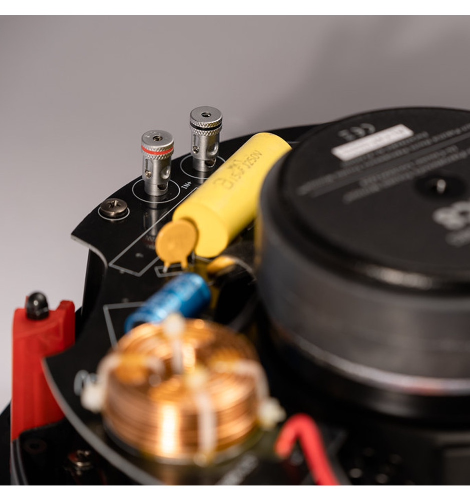 Zaawansowana zwrotnica Vojtko™ z komponentami klasy premium (m.in. kondensatory polipropylenowe, cewki o niskim DCR) zapewnia płynne przejścia między pasmami i wyjątkowo naturalne brzmienie. Ultracienki, magnetyczny grill z mikro-perforacją można pomalować na dowolny kolor, dzięki czemu głośnik perfekcyjnie wtapia się w otoczenie.