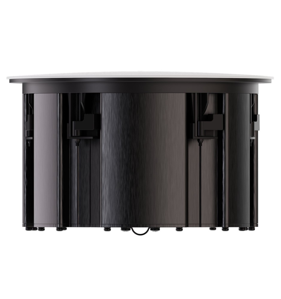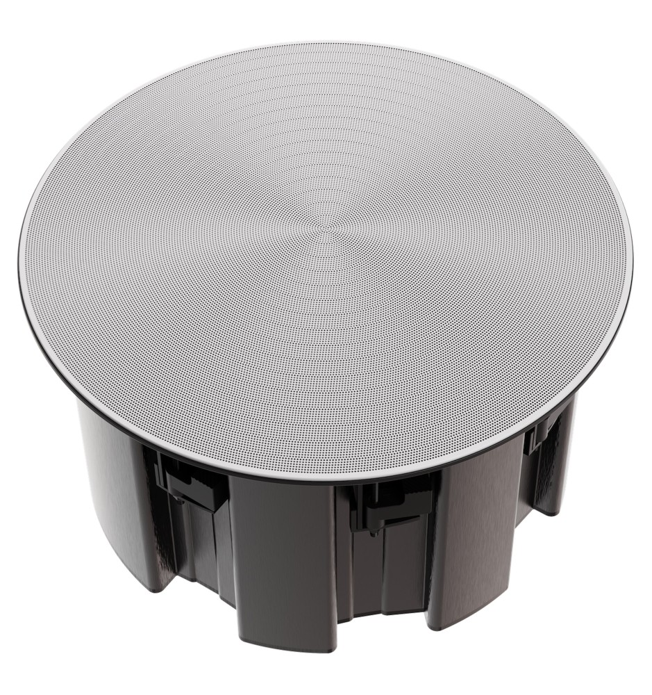 Konstrukcja sufitowa pozwala na niemal niewidoczną integrację z wnętrzem, a magnetyczna maskownica zapewnia estetyczne wykończenie. To doskonałe rozwiązanie dla osób, które oczekują najwyższej jakości dźwięku bez kompromisów wizualnych.