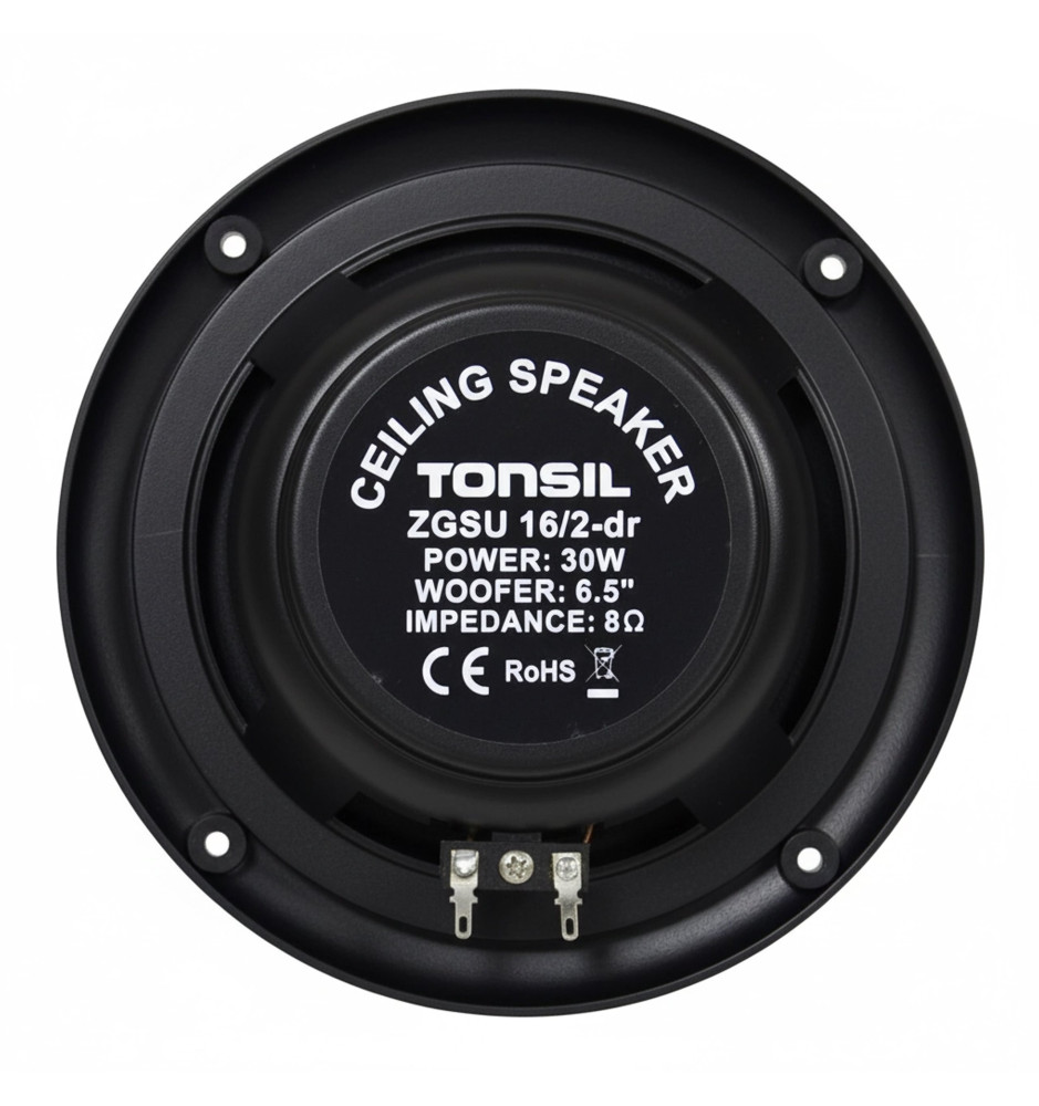Tonsil ZGSU 16/2-DR w eleganckim, czarnym wykończeniu to wysokiej jakości dwudrożny głośnik sufitowy, zaprojektowany z myślą o dyskretnym nagłośnieniu wnętrz takich jak domy, biura, hotele, restauracje czy strefy SPA.