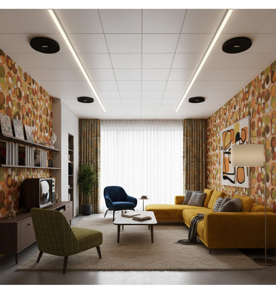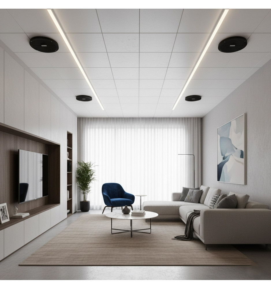 Tonsil ZGSU 16/2-DR został zaprojektowany do montażu w suficie podwieszanym lub płytach gipsowo-kartonowych, dzięki czemu pozostaje niemal niewidoczny w przestrzeni. Czarna, estetyczna maskownica idealnie komponuje się z nowoczesnymi wnętrzami, zapewniając czysty i minimalistyczny efekt wizualny bez ingerencji w aranżację pomieszczenia.