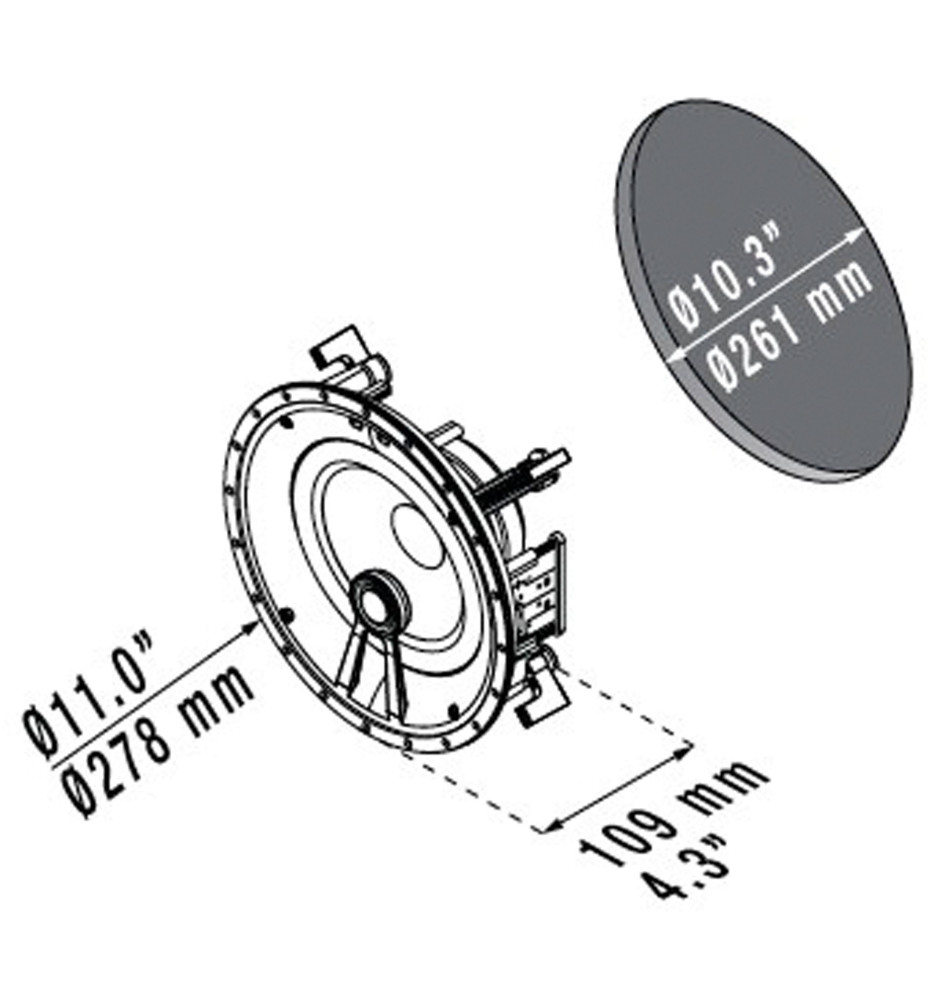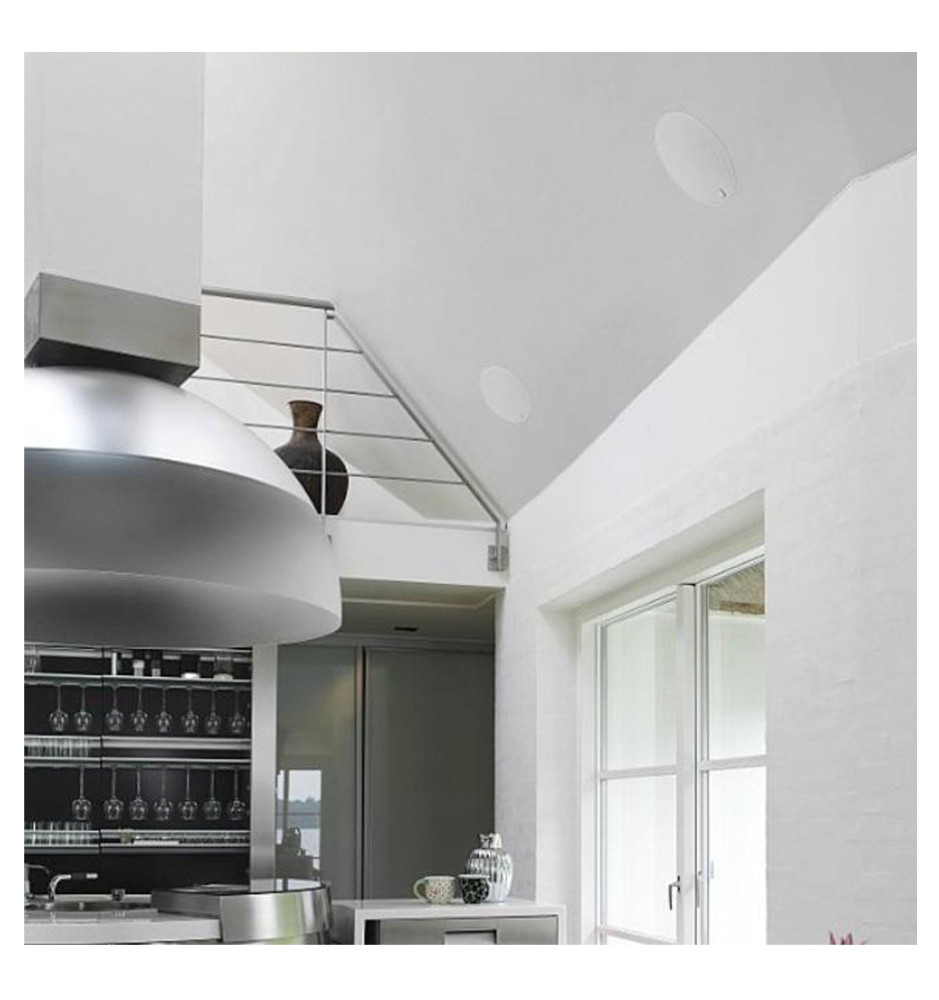Głośnik dedykowany jest do optymalnego montażu sufitowego, ale sprawdzi się także w po umieszczeniu w ścianie. Dzięki kompaktowej strukturze i systemie pozycjonowania zasięgu umiejscowienie głośnika dla uzyskania optymalnego dźwięku jest wyjątkowo proste. Dwa dyskretne przełączniki pozwalają dopasować dźwięk do akustyki pomieszczenia.