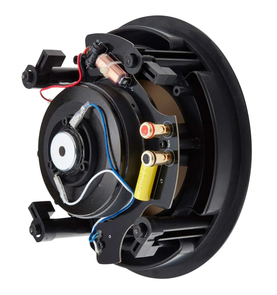 Prawdziwie niskoprofilowa konstrukcja głośnika pozwala na płytki montaż na głębokości poniżej 100mm. Zwrotnica głośnika została w tym celu specjalnie dostrojona, aby zapewnić maksymalne możliwości akustyczne. W komplecie producent dołącza łatwe w montażu zaciski oraz dwie maskownice przystosowane do malowania - okrągłą i kwadratową.