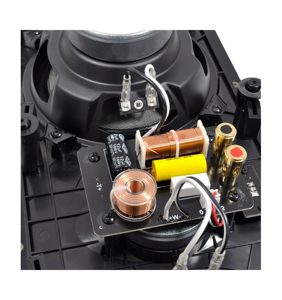 Membrana przetwornika średnio-niskotonowego wykonana z gęsto zaplatanego włókna szklanego o zmniejszonej gradacji dla podniesienia skuteczności. Wysokotonowa jedwabna kopułka z zabudowanym rozpraszaczem zamontowana centralnie dla uzyskania lepszego dźwięku. Dla skutecznego ograniczenia rezonansów głośnik-ściana i ściana-głośnik zamontowano niezależny zewnętrzny pierścień obudowy wyposażony w mocujące łapki blokujące.