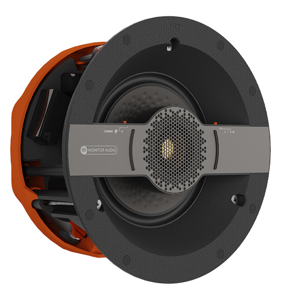 Najmniejszy dwudrożny głośnik montażowy 2-poziomu z serii Creator od Monitor Audio dedykowany do instalacji sufitowej, wyposażony w korekcję barwy względem ścian oraz przełącznik natężenia wysokich częstotliwości - zwiększające swobodę rozmieszczenia głośników w pomieszczeniu.