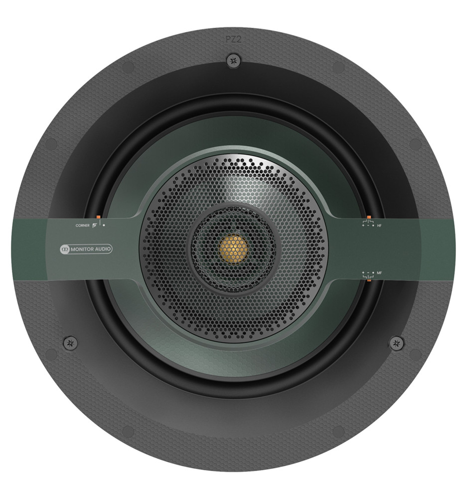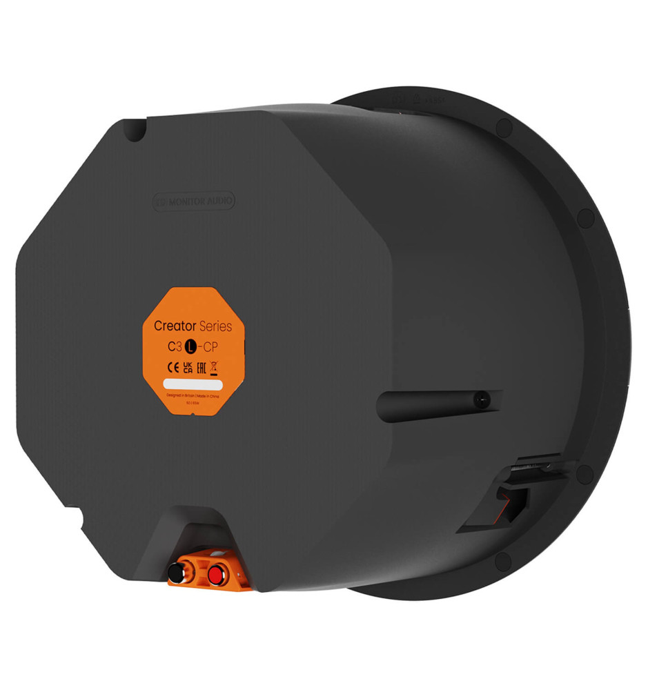 Duży, trójdrożny głośnik montażowy 3-poziomu z serii Creator od Monitor Audio w wersji Controlled Performance (CP) z zamkniętą tylną obudową, zapewniającą optymalny i spójny dźwięk, niezależnie od konstrukcji ścian.