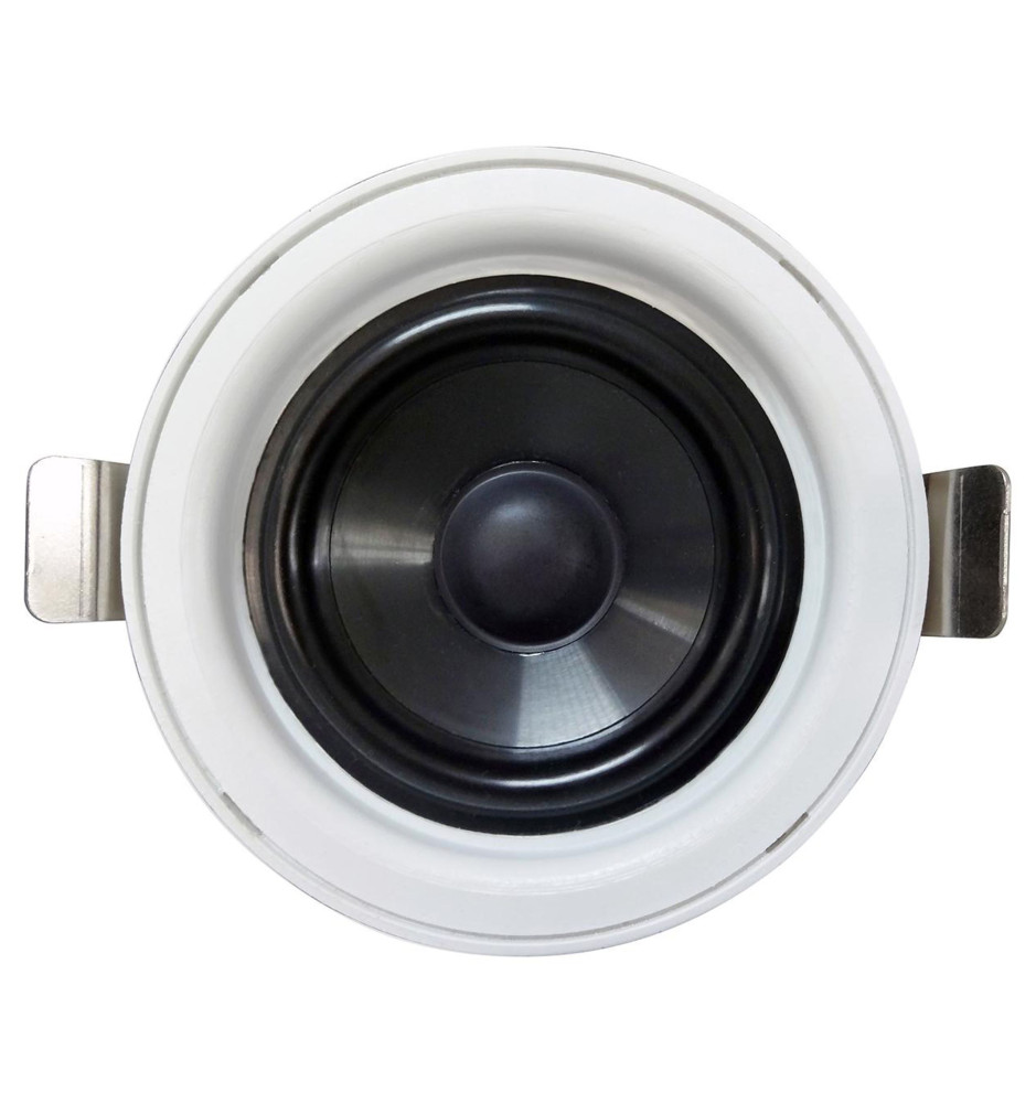 Para niezwykle małych, a jednocześnie potężnych głośników stworzonych do dyskretnej instalacji w suficie.