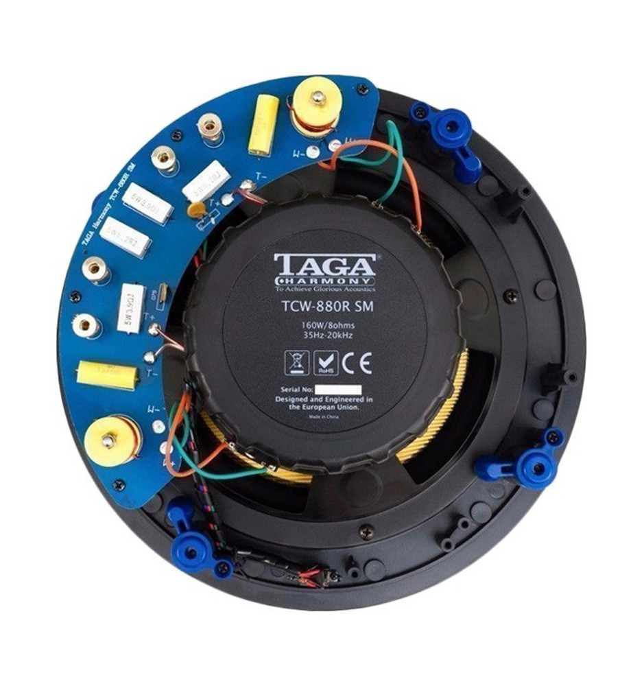 Głośnik Taga Harmony TCW-880R SM wykorzystuje płaskie, niskoprofilowe obudowy oraz magnetycznie mocowane maskownice z możliwością malowania. Dzięki temu głośniki trudno dostrzec w ścianie czy suficie. Aby ułatwić podłączenie głośników producent zdecydował się na umieszczenie wysokiej klasy terminali głośnikowych, które akceptują wtyki bananowe oraz niekonfekcjonowane kable głośnikowe do 10AWG. Specjalne uchwyty i zaciski z ABS w jaskrawym kolorze sprawiają, że instalacja głośników jest niezwykle prosta.