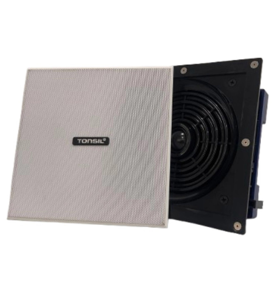 Głośnik sufitowy Tonsil ZGSK-90x90 to profesjonalne rozwiązanie instalacyjne, które łączy w sobie dyskretny wygląd z imponującą jakością dźwięku.