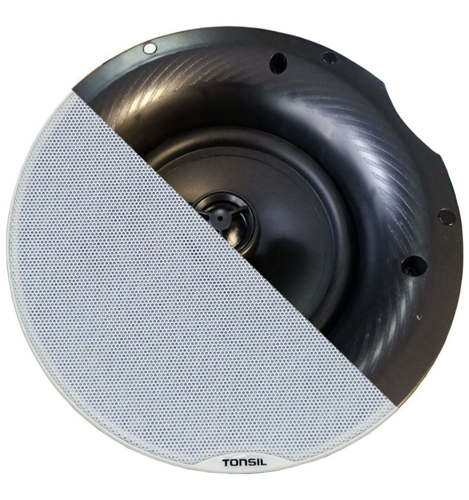Wewnętrzny dwudrożny głośnik sufitowy Tonsil ZGSU 205 S o mocy znamionowej 30W z magnetyczną maskownicą, świetnie sprawdzający się zarówno w instalacjach domowych jak i większych instalacjach sklepów, banków, szpitali itp. Możliwość łatwego montażu w sufitach podwieszanych i ścianach.