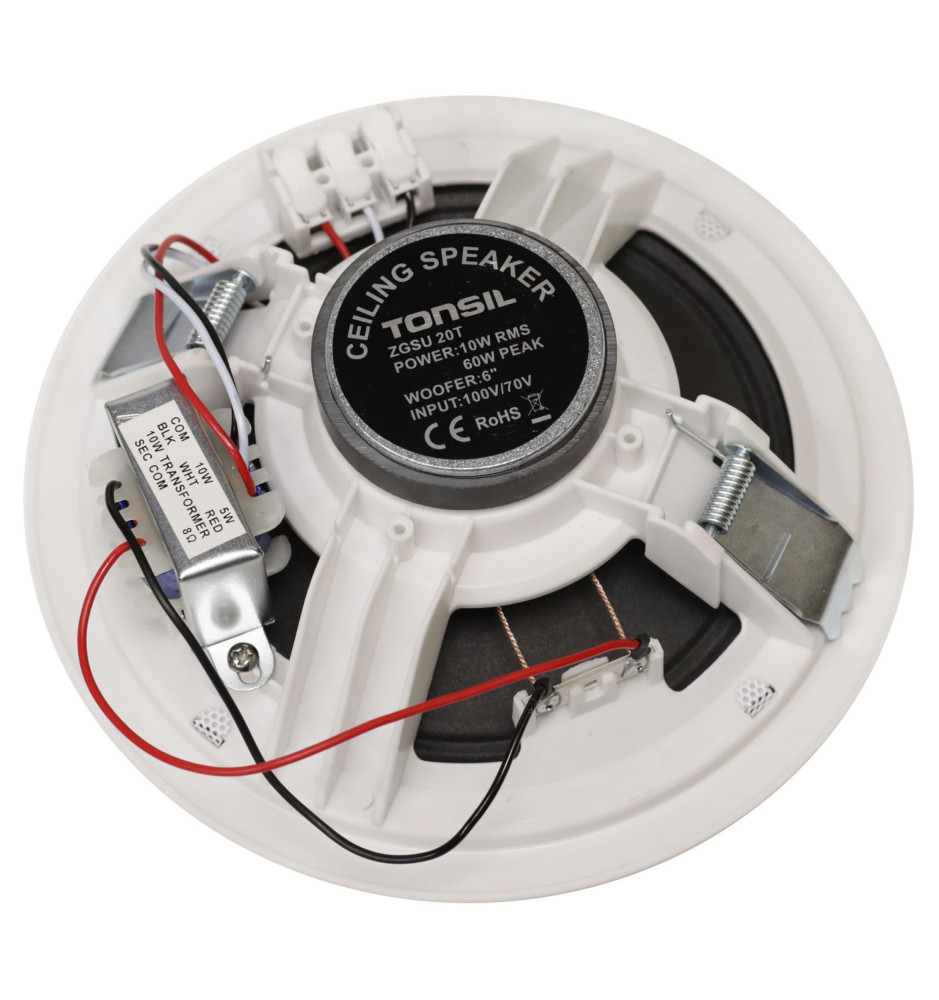 Tonsil ZGSU 20T jest wysokiej jakości głośnikiem instalacyjnym, przystosowanym do dyskretnej zabudowy w suficie podwieszanym. Model ten jest dedykowany do pracy w systemach 70V lub 100V i wyróżnia się łatwym, bezawaryjnym montażem. Dzięki swojej przemyślanej konstrukcji, ten pasywny głośnik sufitowy zapewnia czysty, przyjemny dla ucha dźwięk - idealny do odtwarzania muzyki w tle.