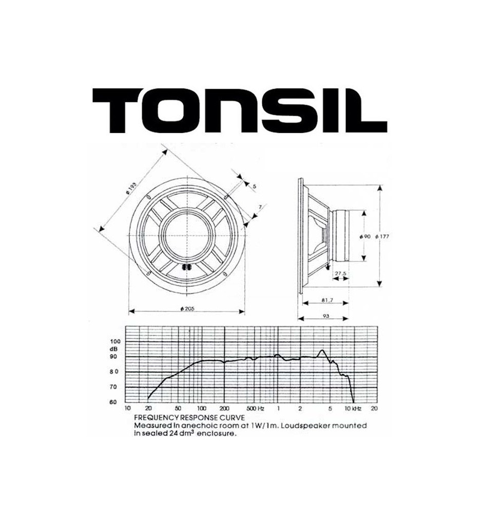 Tonsil GDN 20/60/11 8 Ohm to wysokiej klasy zamienny głośnik niskotonowy, przeznaczony do serii kolumn marki Tonsil oraz systemu kina domowego.
