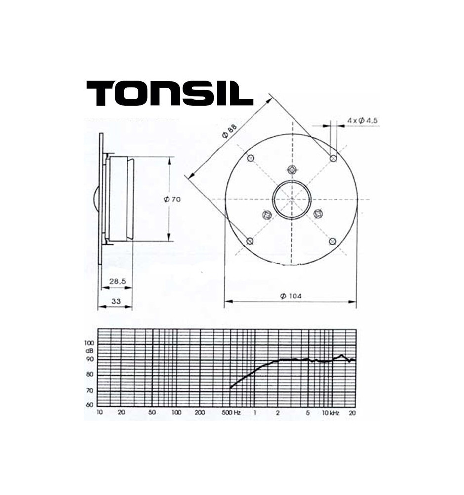 Tonsil GDWK 10/80/19 8 Ohm to wysokiej jakości głośnik zamienny, wysokotonowy przeznaczony do serii kolumn marki Tonsil oraz systemów kina domowego.