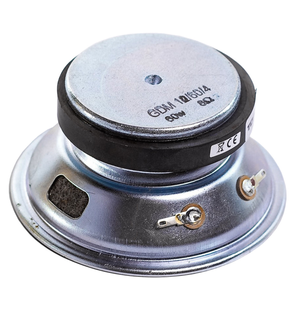 - •Materiał: Materiał magnesu: ferryt; Materiał membrany: celuloza; Materiał zawieszenia: pianka; Materiał korpusu cewki: nomex; Materiał cewki: miedź; Materiał kosza: blacha stalowa;