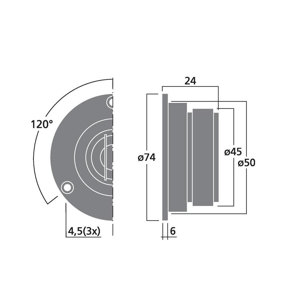 Niewielkich rozmiarów głośnik wysokotonowy HiFi o 11 mm kopułce z dyfuzorem. Jego średnica wynosi 74 mm, a głębokość montażowa 24 mm.