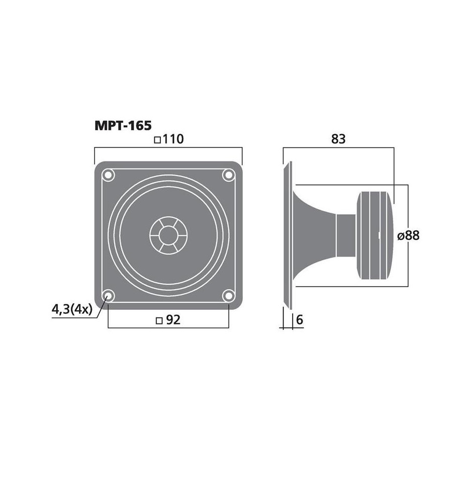 Głośnik wysokotonowy piezo typu "bullet" z niską dolną częstotliwością graniczną. Konstrukcja tego typu sprawia, że ma niewielkie rozmiary i jest niezwykle lekki, co pozwala na jego łatwy montaż.
