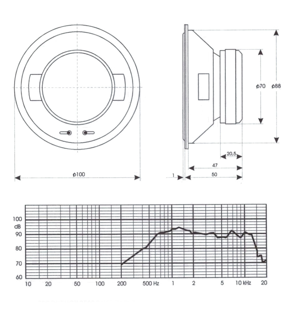 W głośniku Tonsil GDM 10/60/2 8 Ohm zastosowano tradycyjny magnes ferrytowy, będący ceramicznym materiałem stworzonym z żelaza oraz tlenku baru lub strontu. Mimo, że jest cięższy od innych magnesów, poprawia kompresję mocy, nie tracąc właściwości magnetycznych w wysokiej temperaturze.