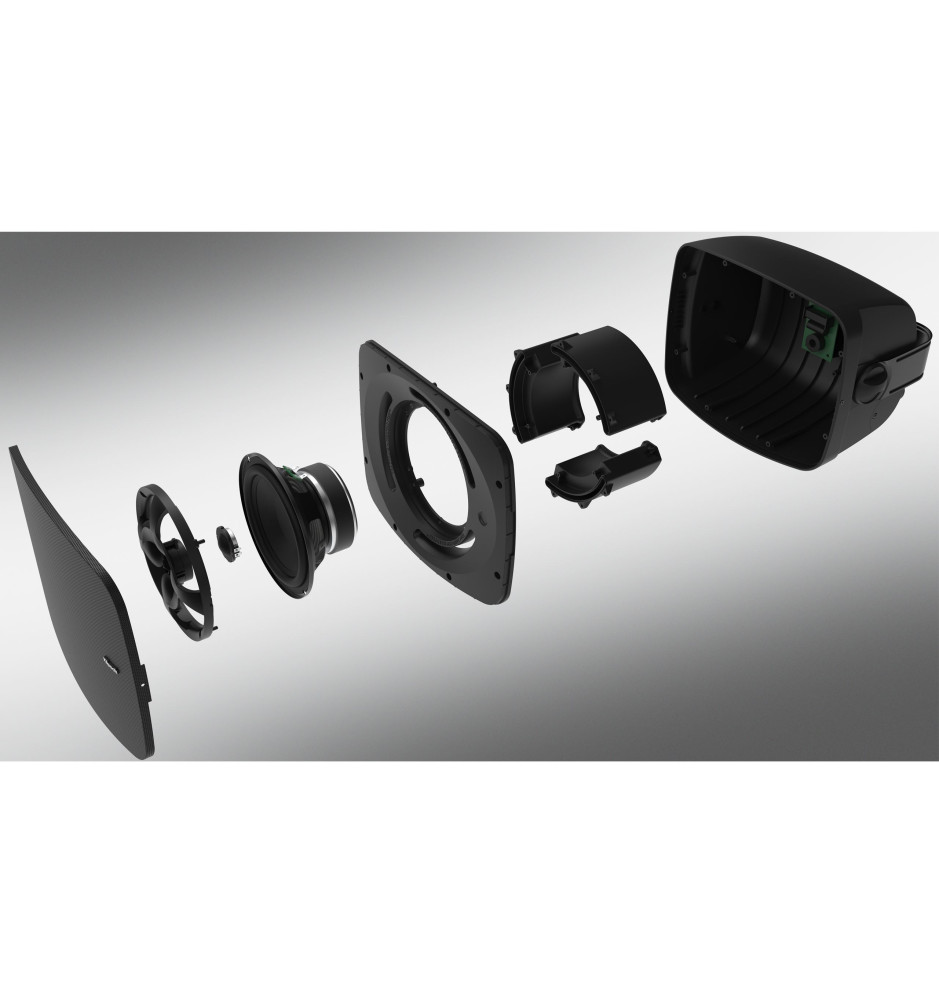 Zestaw dwóch szerokopasmowych, 2-drożnych głośników wyposażonych w opatentowane porty Tractrix® Hyperfold Port™ i przystosowanych do montażu powierzchniowego na zewnątrz lub wewnątrz pomieszczeń.