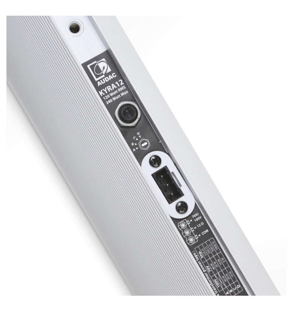 Na budowę kolumny Audac KYRA12 w wersji zewnętrznej składa się aż dwanaście pełnozakresowych przetworników w rozmiarze 2 cale, które odpowiadają za niezwykle klarowny i szczegółowy dźwięk. Zostały one umieszczone w eleganckich i smukłych obudowach i wykończone perforowanymi maskownicami.