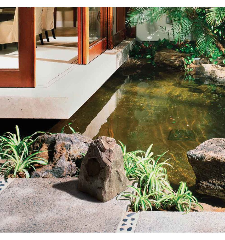 Obudowa całkowicie uszczelniona, wzmacniana i pokryta imitacją kamienia oraz grill stalowy odporny na promieniowanie UV i wodę, zapewniają ochronę w trudnych warunkach pogodowych. Głośnik ML-65R może być ustawiony na ziemi, w ogrodzie, wokół basenu, tarasu itp. Dzięki wyglądowi imitującemu kamień ML-65R dyskretnie wtapia się w otoczenie.