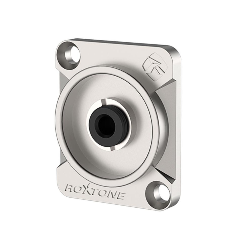 Gniazdo typu mini Jack stereo 3.5 mm marki Roxtone służące do przesyłania sygnału audio. Polecane jest odbiorcom zajmującym się nagłośnieniem, którym zależy na wysokiej stabilności, trwałości i niezawodności połączeń.