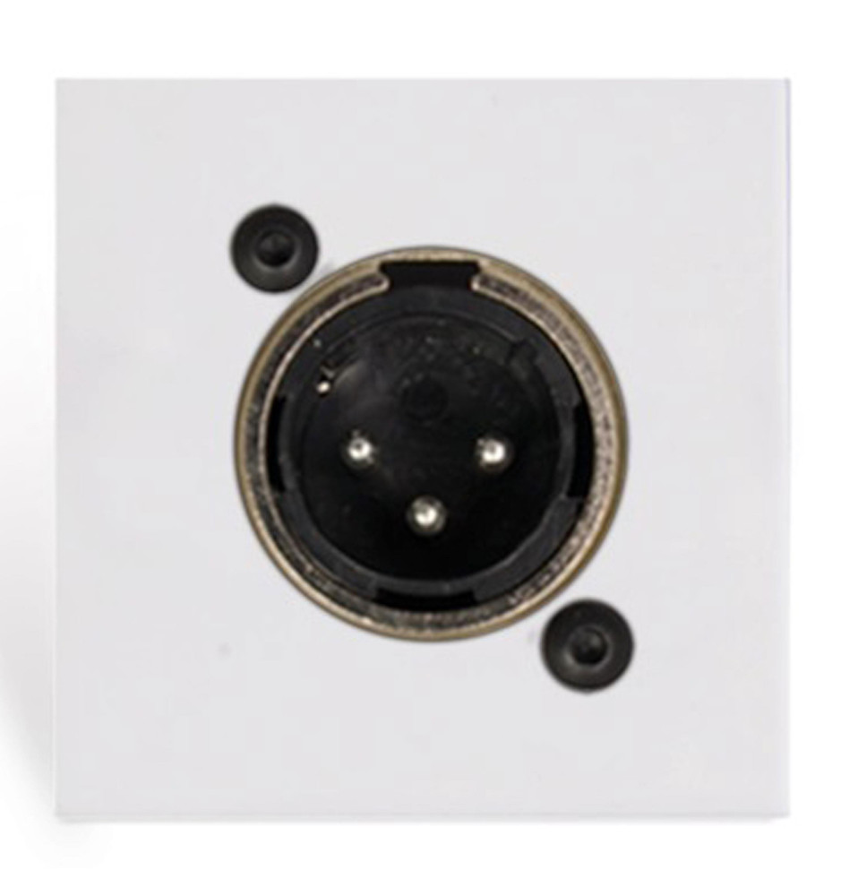 Płyta przyłączeniowa z męskim, 3-pinowym złączem XLR przeznaczona do stosowania ze standardowymi ramkami montażowymi i osłonami w rozmiarze 45x45 mm.
