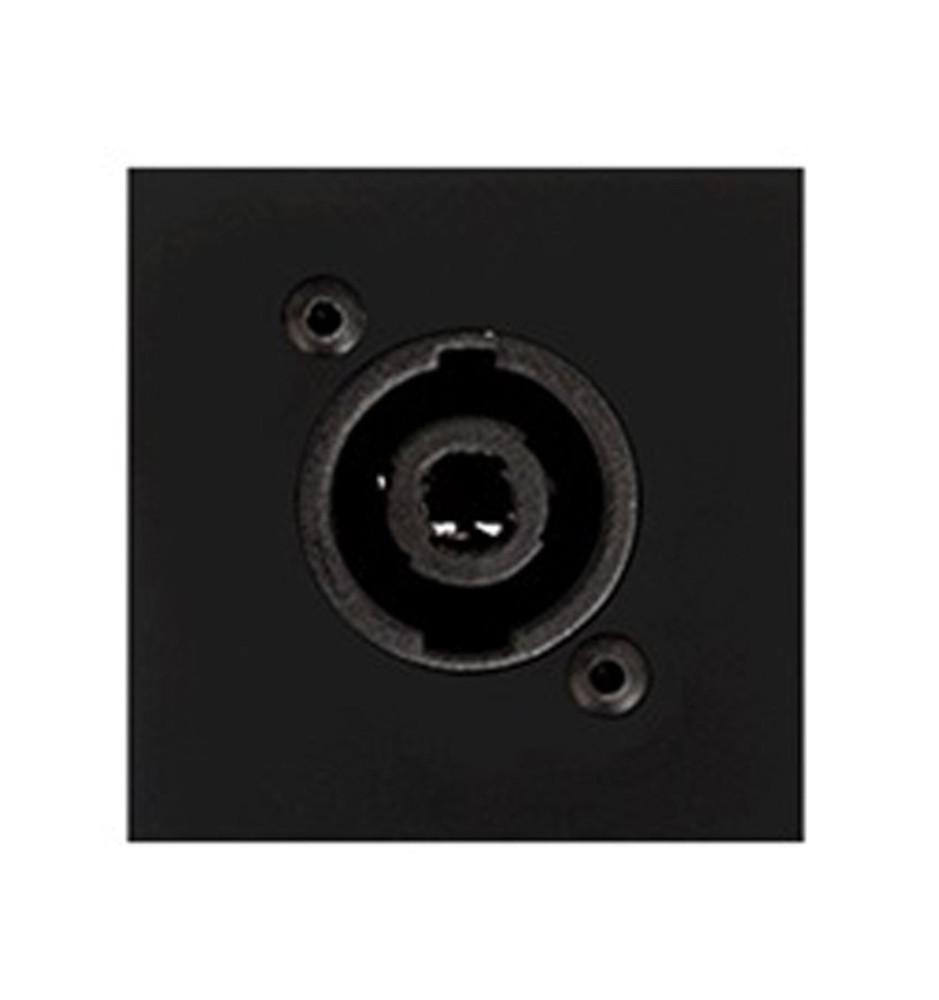 Płyta przyłączeniowa ze złączem speakon, przeznaczona do stosowania z materiałami instalacyjnymi marki Audac, Niko, Legrand i innymi standardowymi ramkami montażowymi i osłonami w rozmiarze 45x45 mm.