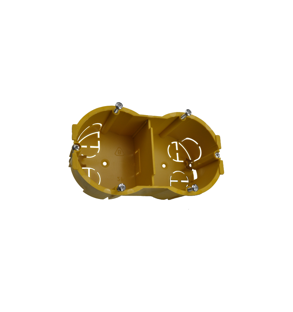 Podwójna puszka do systemu MultiPanel. Nadaje się do instalacji w ścianach z betonu oraz wykonanych z płyt gipsowo-kartonowych.