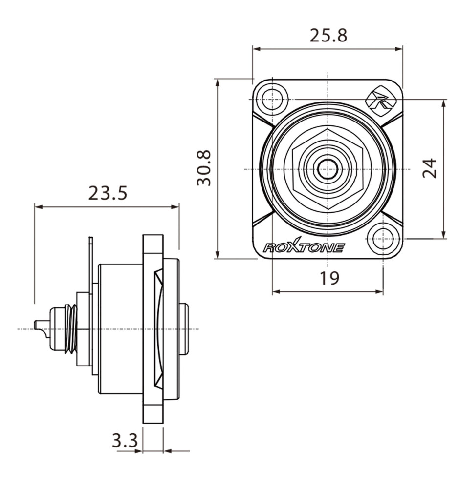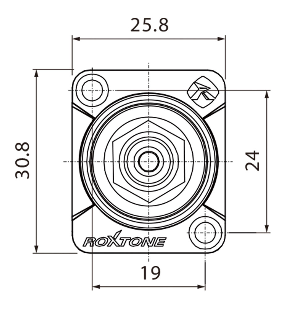 Gniazdo Roxtone RF2D-B-R dzięki temu, że ma pozłacane piny, co wydatnie przekłada się na jakość przesyłanego sygnału oraz ochronę przed korozją i utlenianiem. Sam korpus jest solidny, a jako materiał do jego wykonania wykorzystano powłokę ze stopu cynku. Standardowy rozstaw otworów montażowych 24x19 mm pozwala na bezproblemowy montaż gniazda w panelu.