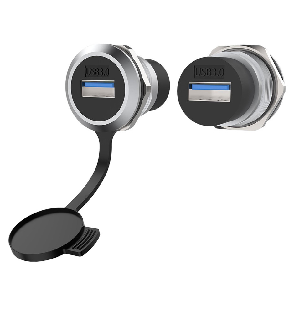 Okrągłe, dwustronne gniazdo montażowe USB w standardzie 3.0. Konstrukcja typu plug&play nie wymaga używania żadnych dodatkowych materiałów instalacyjnych.