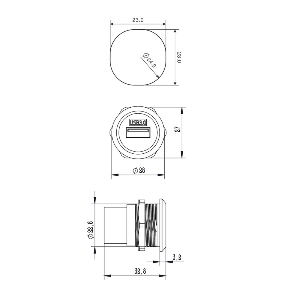 Okrągłe, dwustronne gniazdo montażowe USB typu C. Konstrukcja typu plug&play nie wymaga używania żadnych dodatkowych materiałów instalacyjnych.